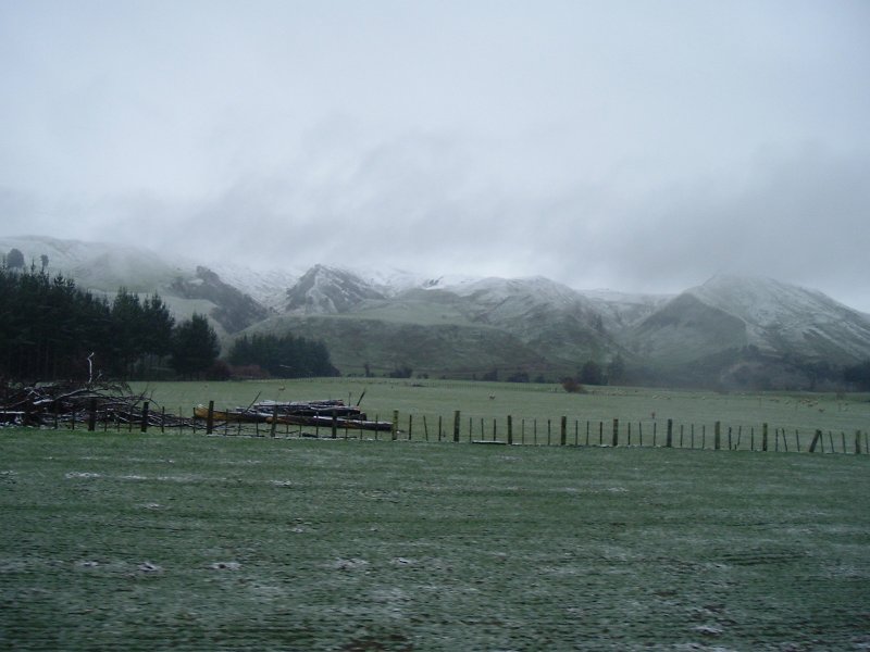 Then just before Taihape the snowline crept down to the fields around the train and going