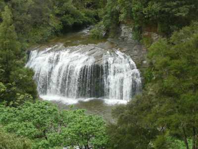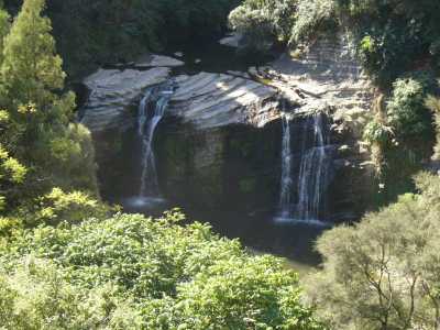 of you as you re-cross the river on the barrage, is this waterfall on the Mangamate Stream as it drops into