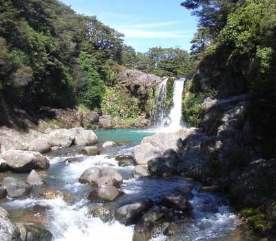 miles up the Tongariro River are the Waikato Falls. The river twists through a deep, narrow gorge,